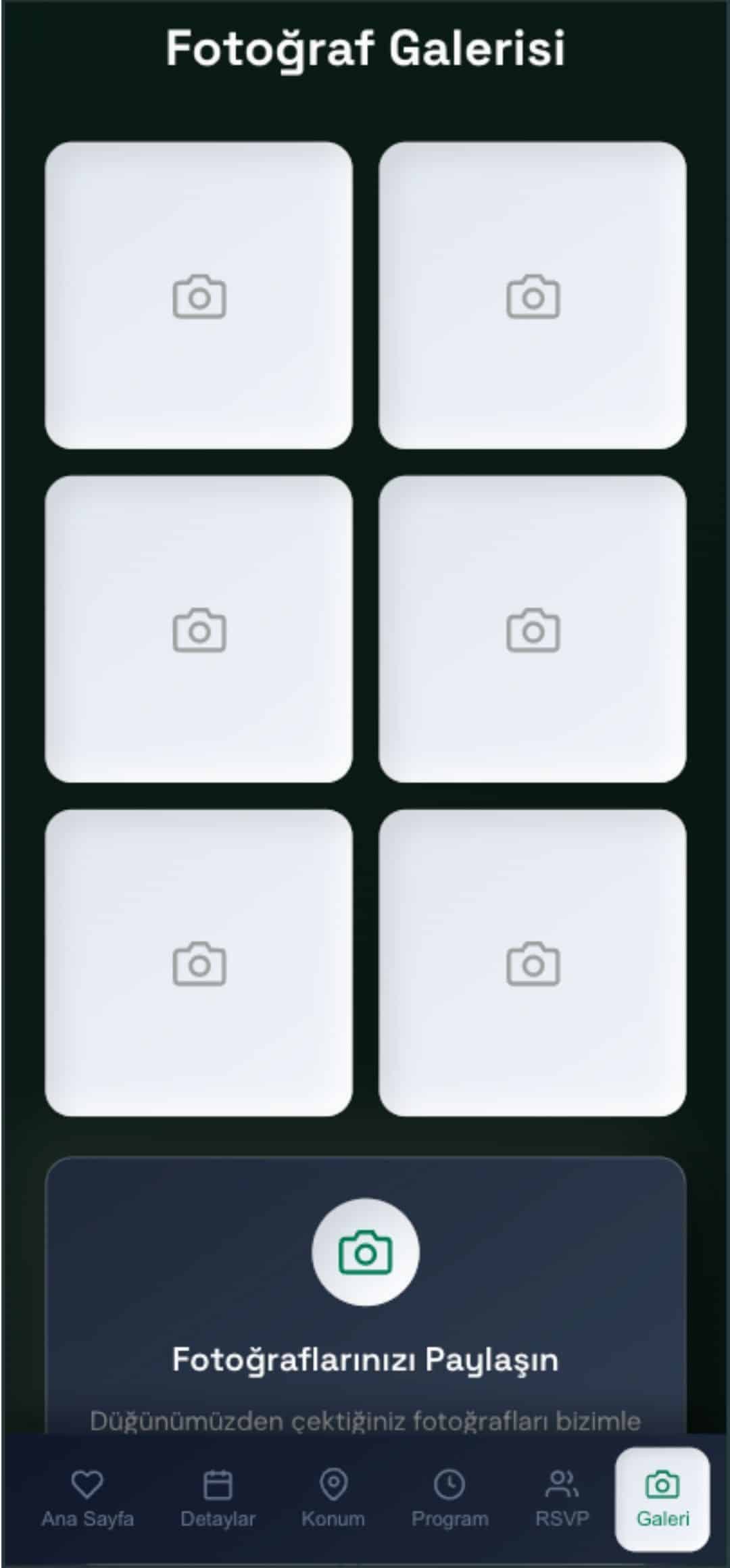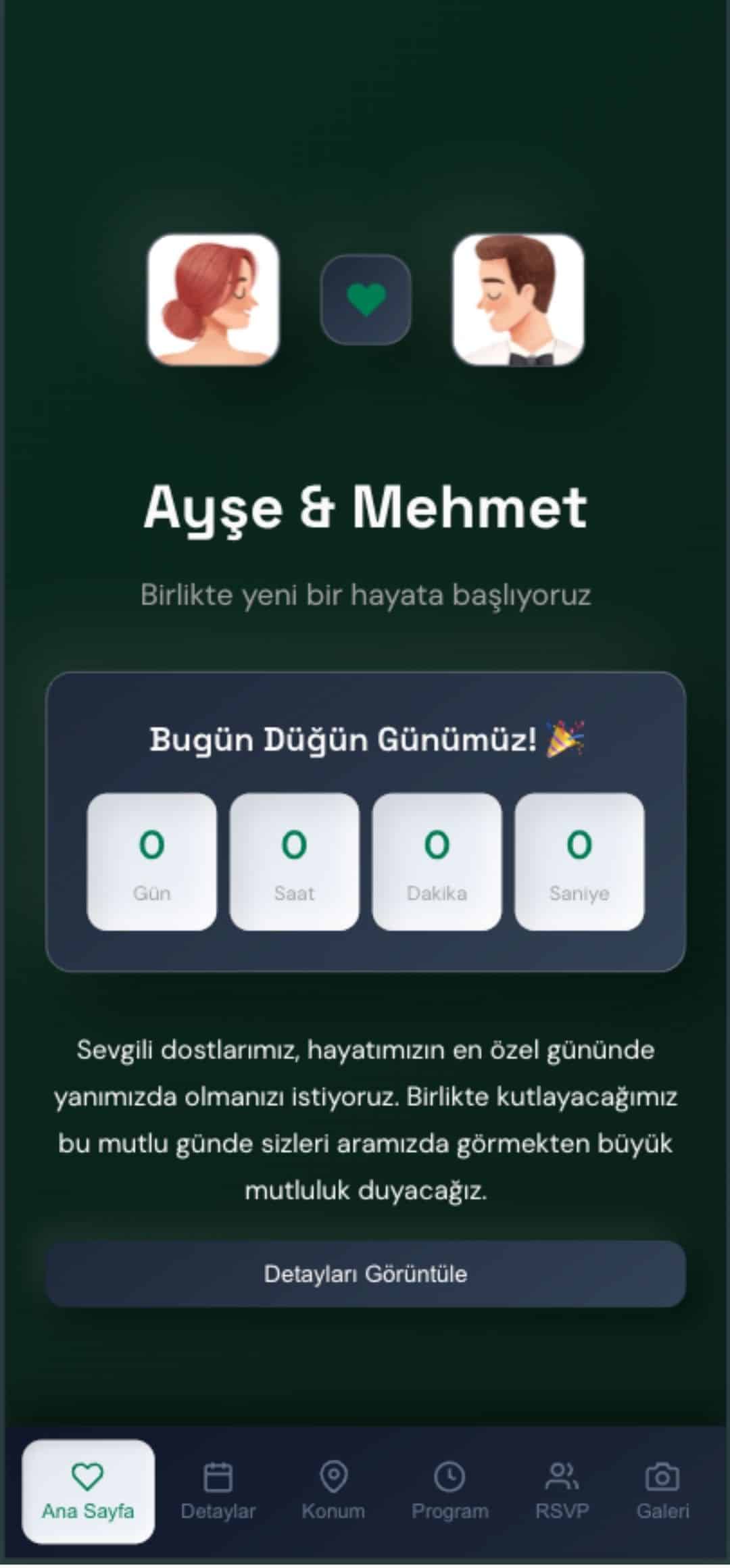 - Sayfa, düğün sonrası “anı sayfası”na dönüştürülebilir