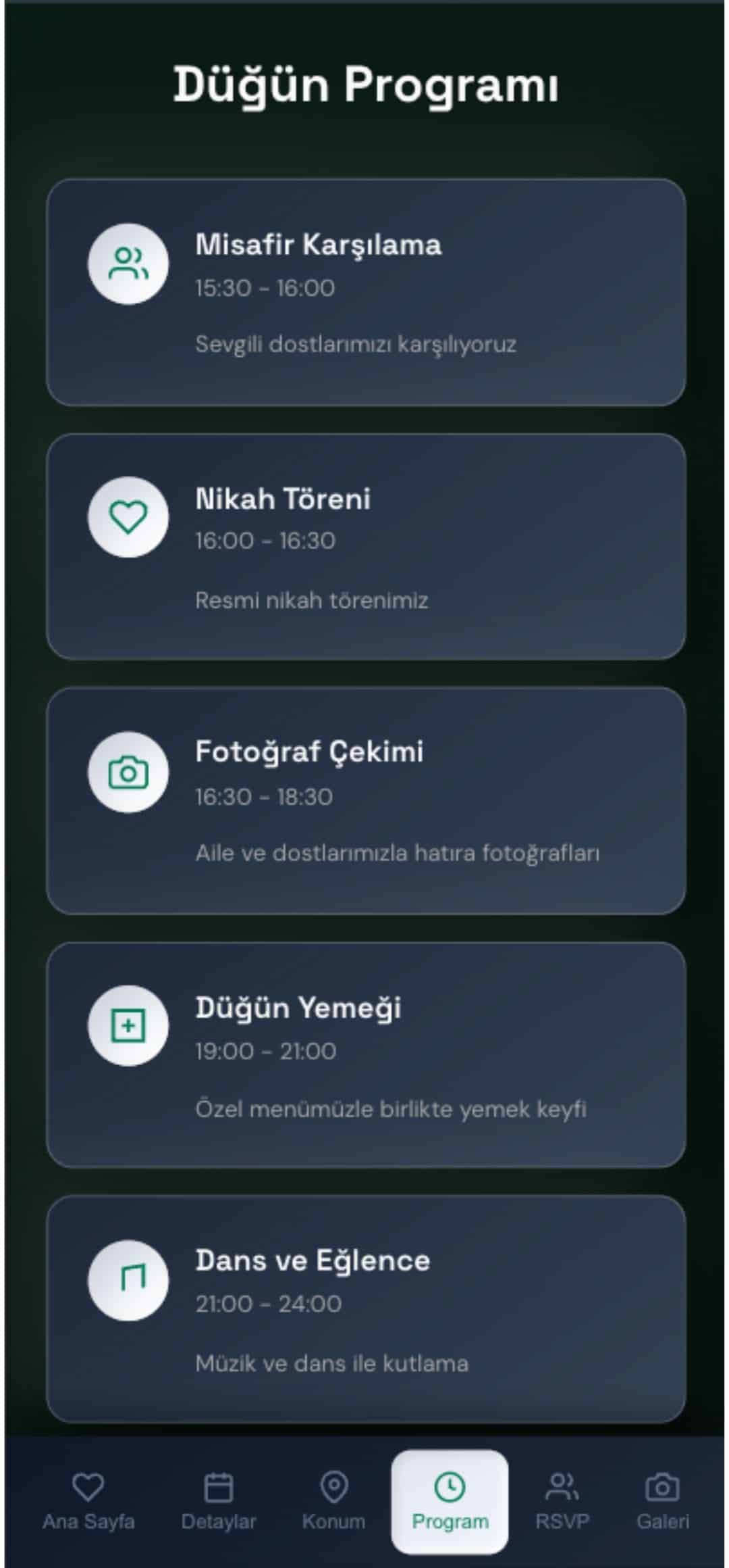 - Tamamen dijital davetiye (link olarak paylaşılabilir)