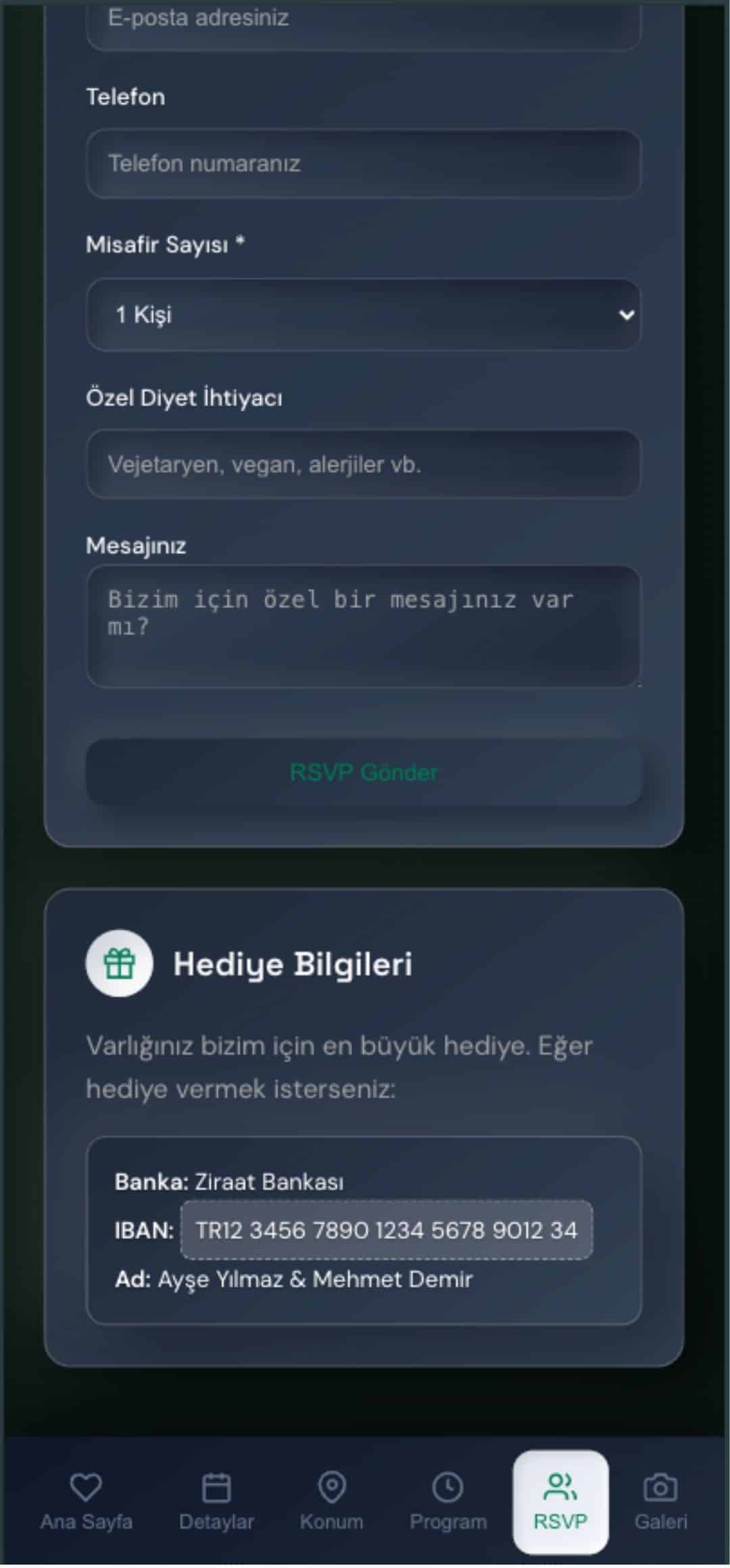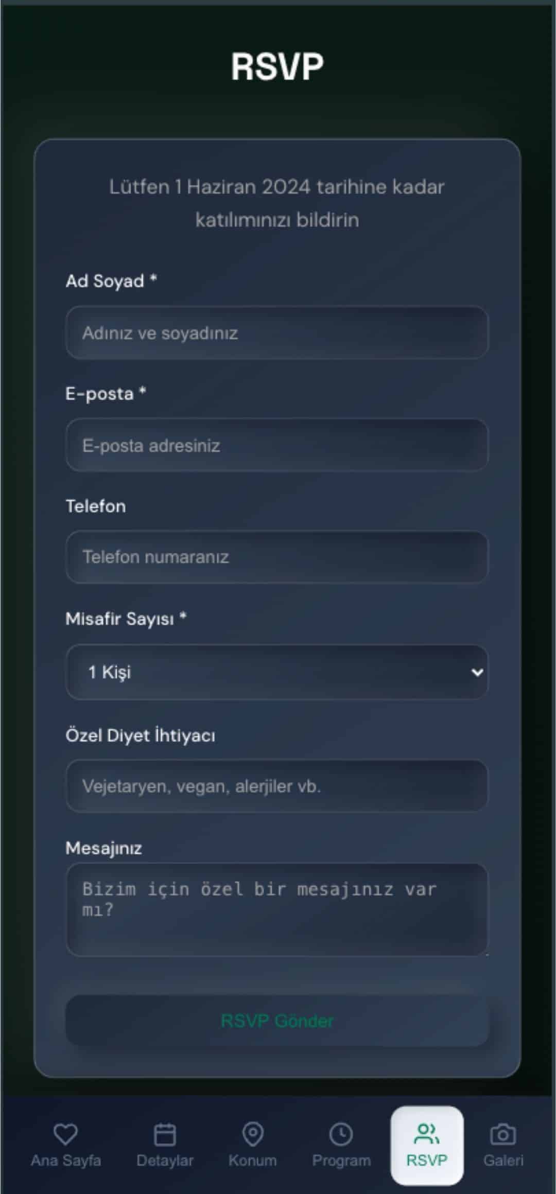 | RSVP Formu | Katılım bildirimi ve kişi sayısı |